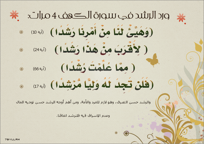 حبي لله ورد الرشد في سورة الكهف 4 مرات