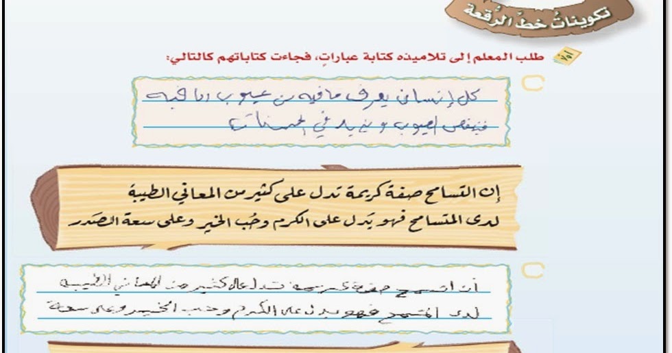 شرح درس الرسم الكتابي تكوينات خط الرقعة موقع واجباتي