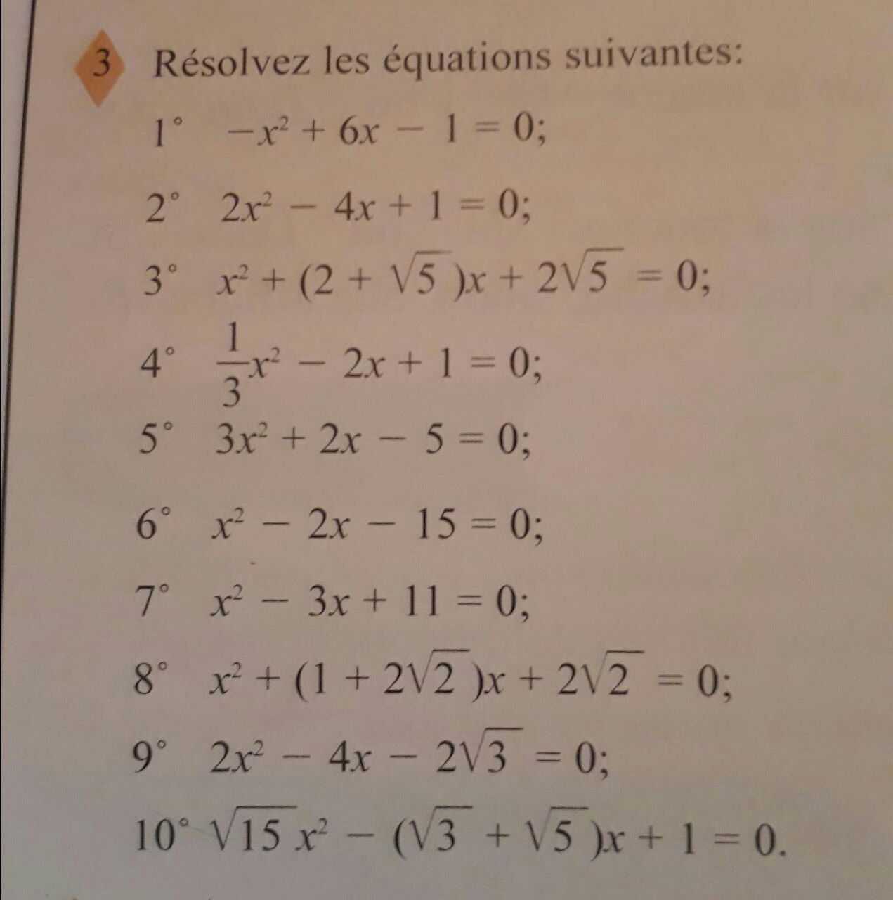 تمرين يحتوي على 10 معادلات من الدرجة التانية عالم الرياضيات