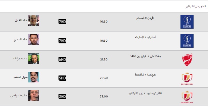 جدول مواعيد مباريات اليوم السبت 9ــ1ــ 2016 والقنوات الناقلة اليوم السابع