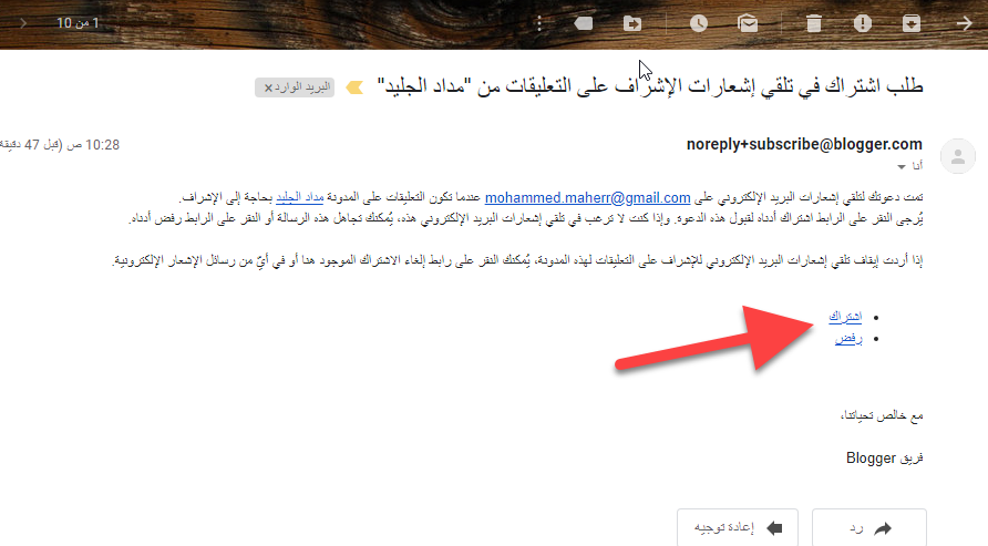 حل مشكلة عدم وصول إشعار بالبريد الإلكتروني عند إضافة تعليق على مدونتك بلوجر مداد الجليد