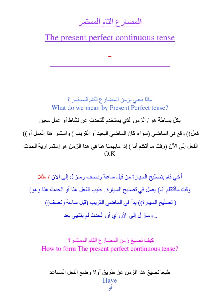 المضارع التام المستمر Pdf Grammar Language Mechanics