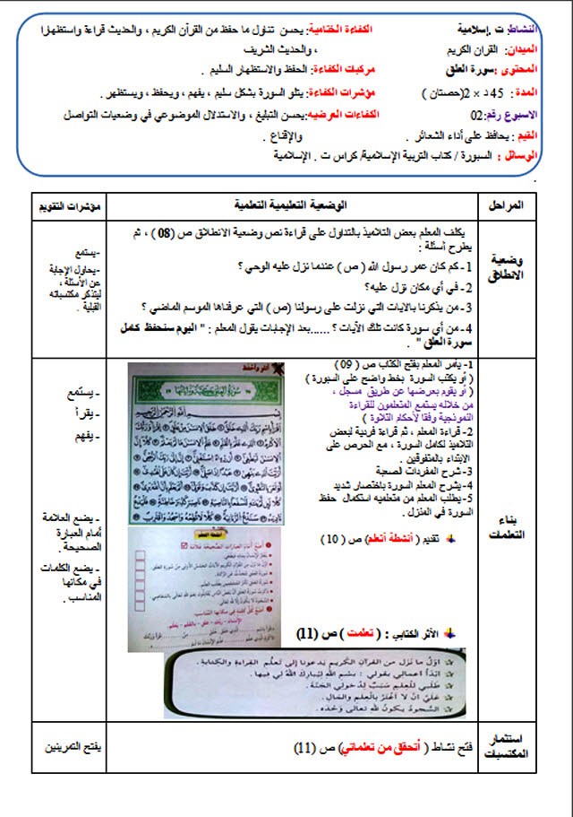 السنة الرابعة إبتدائي الجيل الثاني التربية الإسلامية